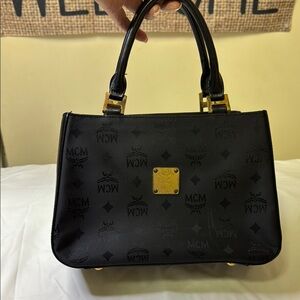 🖤 Black jacquard MCM canvas with smooth leather trim