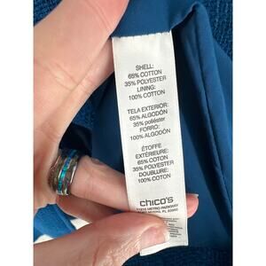 Chicos Jacket Coat Womens XL 3 Blue Peacoat Tweed Long Office Gold Button