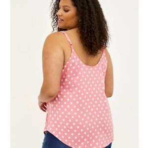 Pink and white polka dot cami, NWT. Stretch challis woven fabric: Your favorite easy-but-polished fabric with the perfect touch of stretch. Color may vary due to lighting.