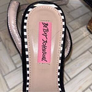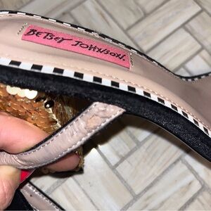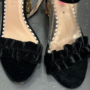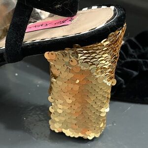 Betsey Johnson Iliana BlackRuffle Ankle Velvet Sequin Block Heels Size 7…