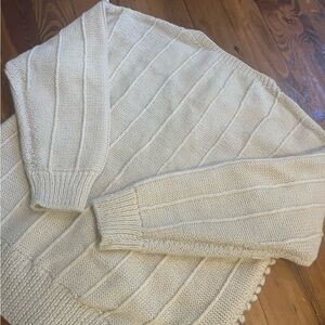 Vintage Cottagecore Cream Wool Hand Knit Floral Bobbles Cardigan