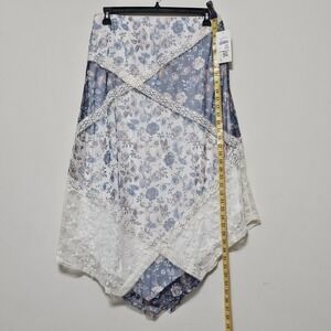Festival Women's Skirt Size Large Fits 12/14 Midi Blue White Lace Floral New 275