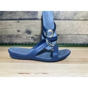RARE - Crocs Sanrah Hammered Circle Slide Sandals Size 10 Navy Charcoal Silver