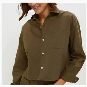 Women's Tuckernuck Army Green Chino Cropped Jasper Button Down Shirt, XS.