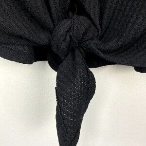 Umgee Floral Embroidered Waffle Tie Front Blouse Black L