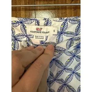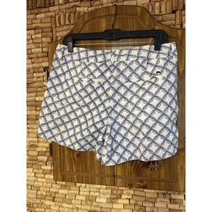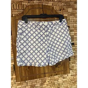 Vineyard Vines Women's Shorts White Blue Geometric Leaf Lightweight Chino Size 6