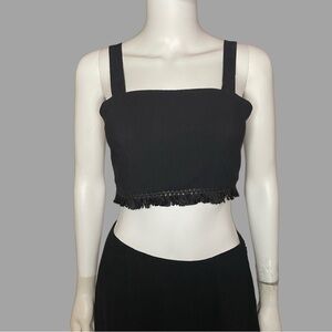 Blush Blush Black Bohemian Fringe Crop Top