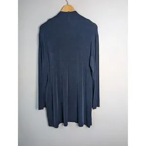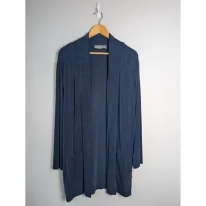 Chico's Cardigan Womens M Blue Open Pocket Collared Tight-Knit Relaxed Fit