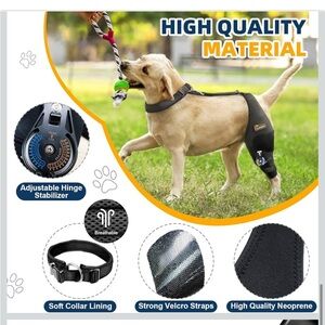 Ensure your dog's comfort and support with the black dog knee brace. Designed for easy adjustment and secure fit.