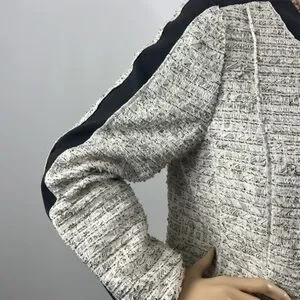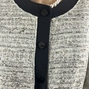 Beautiful long jacket can be worn as a dress! Front Snap closure. Two pockets that snap . The vertical piping creates an elongated look. Never worn. Tre’ chic for work or Brunch. Zoom in to see intricate weave in the fabric. Tailored in classic WORTH tradition and style. Dry Clean. Lined.