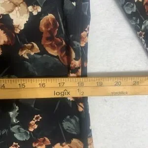 Embrace a bloom of elegance with this H&M floral print dress. The captivating dark floral pattern comes alive with warm rust and muted green tones, creating a sophisticated and chic aesthetic. Designed with a flattering V-neck and 3/4 sleeves, this dress offers a graceful silhouette perfect for transitioning seasons. Its airy fabric drapes beautifully, making it ideal for a garden party, a casual brunch, or a stylish day out.