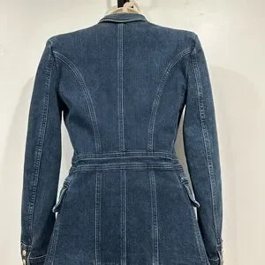 Like New! Authentic beautiful soft thick denim blazer with gold buttons. Tailored fit with perfectly padded shoulders. Gorgeous, quiet luxery.