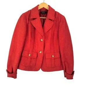 Talbots Wool blend classic button blazer orange 90s preppy sz 10
