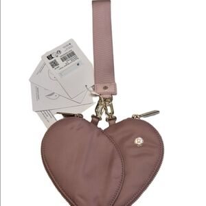 Make a statement with this Spiced Chai, Pink Haze and Gold heart wristlet by Lululemon.