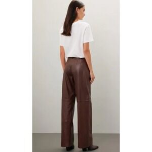 VEDA Pants Women 12 Brown Leather Wide Leg High Rise Trousers