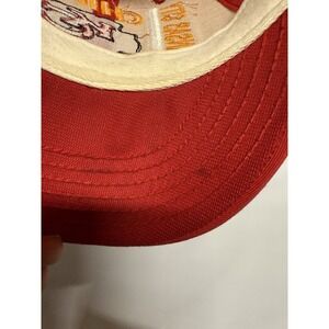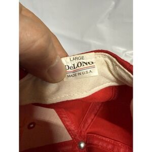 This VTG 80s 90s Kansas City Chiefs DeLong Canvas Snapback Hat in red is a vintage-inspired accessory perfect for football fans. Made in the USA, this lightweight and adjustable hat features a solid pattern with a Chiefs character theme, embodying NFL and sports nostalgia. The canvas fabric and snapback style make it a versatile piece suitable for travel, parties, or casual outings in all seasons. Represent your favorite team in style with this unique and classic hat.