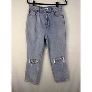 PacSun Mom Jeans 29 Light Wash Blue Good Distressed Ripped Knee Button Fly