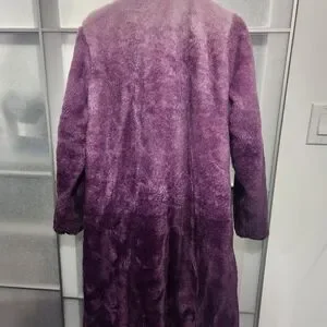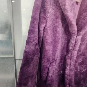 Luxurious purple teddy jacket. Soft faux fur texture. Perfect for chic warmth.
