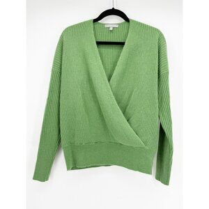Neiman Marcus Women's Green Ribbed Faux Wrap Cashmere Sweater Size L