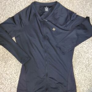 tommie copper Stylish black long sleeve zip-up top with a subtle logo detail. size large euc copper and zinc infused fabric