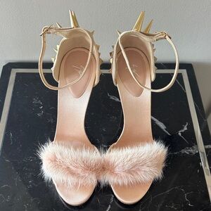 Size 39 Giuseppe Zanotti pink mink and suede spike sandals