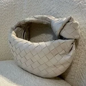 Crafted in the house’s signature woven leather with sculptural knitted top handle, this refined silhouette is both timeless and modern.