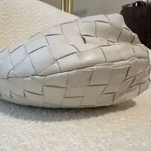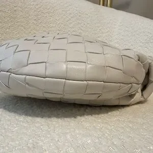 Authentic Bottega Veneta Mini Jodie in Chalk intrecciato leather.