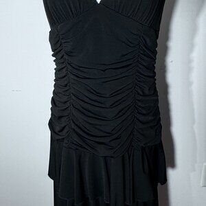 Eloquent black halter ruffled dress. Ties around the neck. Great for any event.