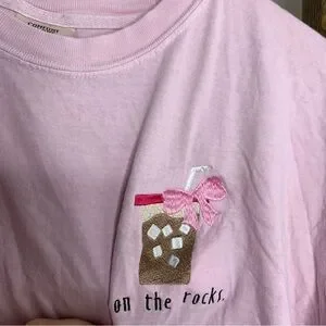Comfort Colors Embroidered On The Rocks Pink Graphic T-Shirt XL
