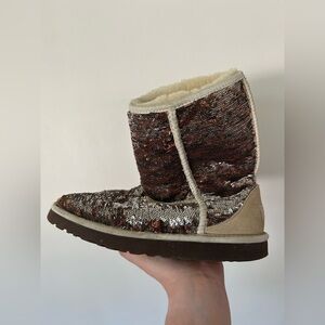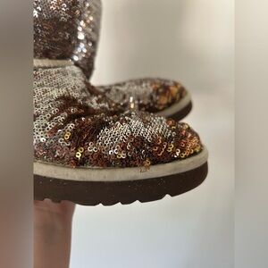 UGG Australia Classic Short Boots Sparkle Sequin Champagne Size 7