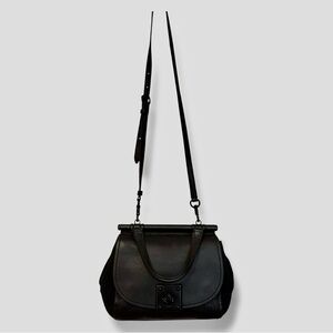The Coach Drifter bag is a versatile, structured handbag inspired by archival designs, often featuring a signature oversized turnlock, dowel detailing, and a mix of materials like pebble leather, suede, and python. Popular in the Coach 1941 collection, these bags are known for their modern, luxurious, yet functional design. Features matte black hardware, turn lock opening, magnetic side expanders. Can be carried as a top handle satchel or as a crossbody. Smoke free home. The first photo is a stock photo this bag does not have its hand tags.