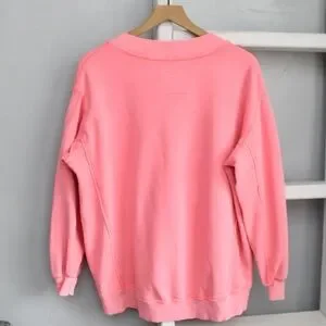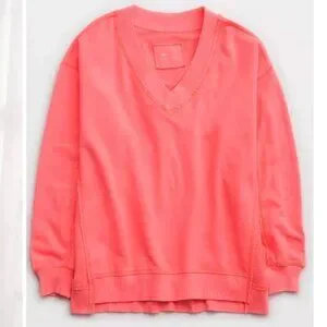 Aerie Tropadel Pink Vacay Every Day V-Neck Pullover Oversized Sweatshirt sz XXS
