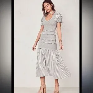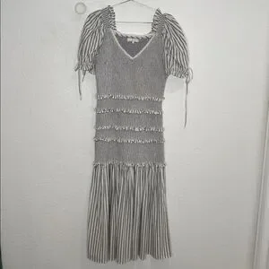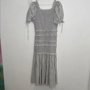 LOVESHACKFANCY THEA DRESS - STRIPE Navy/White Large