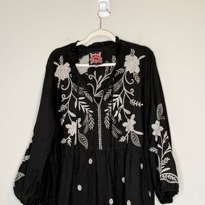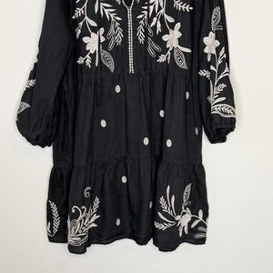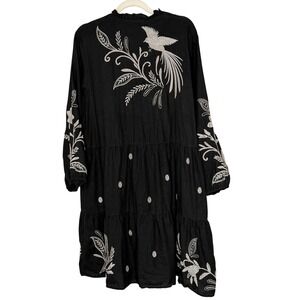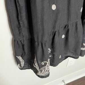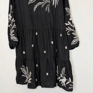 Johnny Was Black Linen Embroidered Frankie Tiered Field Dress Bird Boho Large