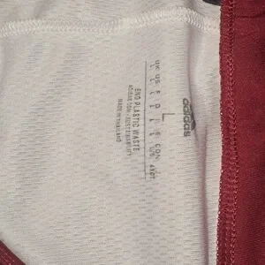 Stylish mini skort with a modern design. Features red and white pattern. Ideal for casual outings, or a round of tennis. Classic Adidas functionality, moisture wicking fabric. Like new.