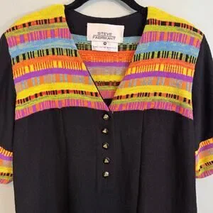 Vintage Steve 80s Fabrikant Wool Sweater Dress Large Black Colorful Retro Unique