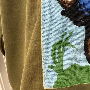 Re worked sewn on graphic, hoodie has signs of wear and colour fading