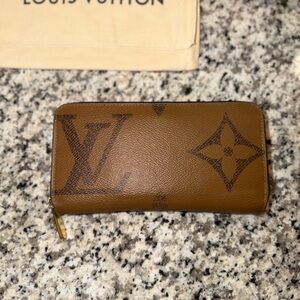 Crafted in signature Monogram Giant coated canvas with refined leather interior and gold-tone hardware, this zip-around wallet offers both timeless elegance and everyday functionality.
