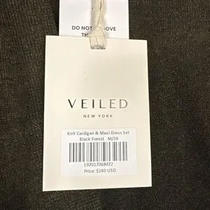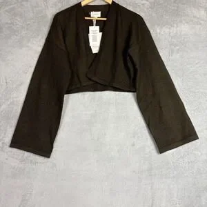 Veiled Cropped Knit Cardigan Shrug Black Forest Green Medium NWT Luxury