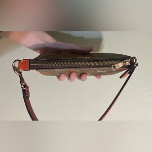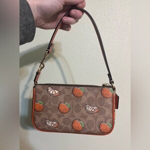 This mini purse features the signature “C” Coach print in coated canvas with leather trimmings and cute oranges accented along the front and back of the purse! Measurements in the product details below.