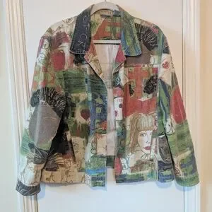 VTG 90s Chico's Utility Graffiti Cotton Jacket
