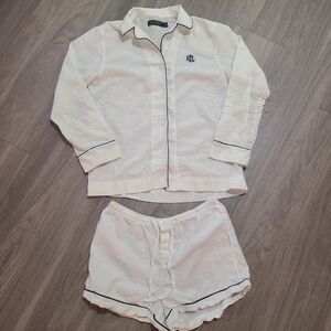 Lauren Ralph Lauren Womens XS White Pajama Set with Blue Trim