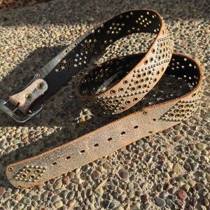 Baltazar Distressed Leather Belt silver studded large