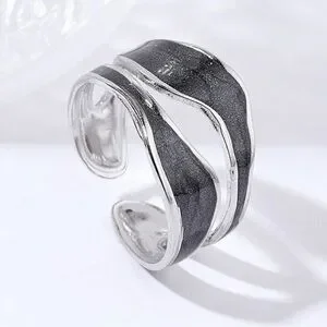 This contemporary silver and black wave ring adds a touch of modern elegance to any outfit. Adjustable so it always fits.