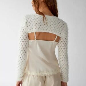 The softest UO shrug that’s perfect for layering. Ultra-cropped and slim-fitting silhouette with a crew neckline. Complete with a fuzzy eyelash finish. Only at Urban Outfitters.