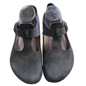 Birkenstock T-Strap Black Oiled Leather Clogs Mary Jane EU 40 L9 M7 Germany