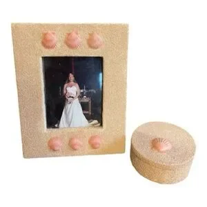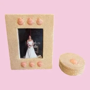 Frame & Trinket Box, Textured Sand Finish with Scallop Shells.