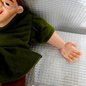 This vintage Disney Hunchback of Notre Dame Quasimodo Burger King plush puppet doll from 1996 is a rare and collectible piece for any Disney fan. With its green plush material and hand puppet design, this toy brings to life the beloved character Quasimodo from the animated adventures series. Perfect for nostalgia seekers and Disney memorabilia collectors, this unique item embodies the charm of cartoon and TV characters from the 1990s, making it a special addition to any collection.