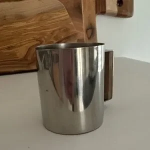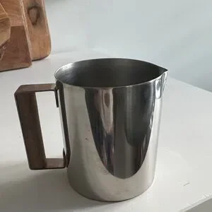 Vintage Stainless Steel Milk Frothing Pitcher with Wooden Teak Handle MCM Danish