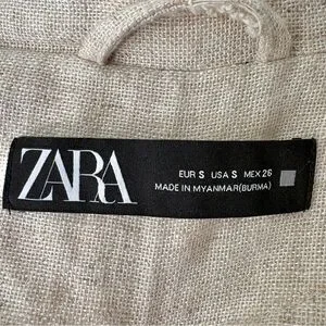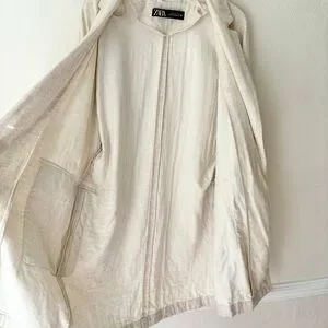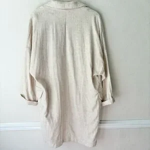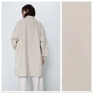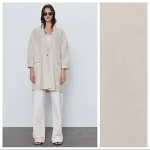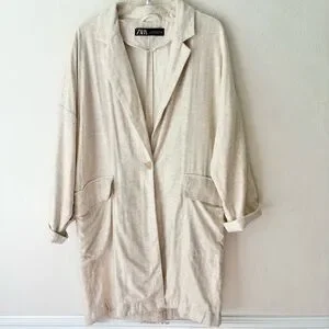 Zara Linen Blend Cream Tan Rustic Oversized Long Blazer Jacket